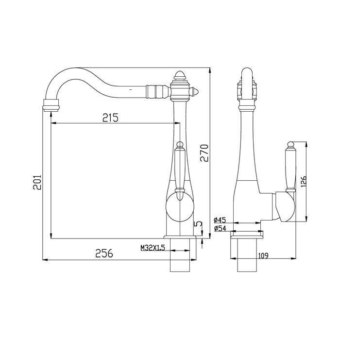 ברז פרח קצר - BRUSH NICEKL + BLACK