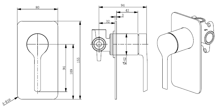ברז תה״ט 4 דרך - BRUSH NICEKL + BLACK