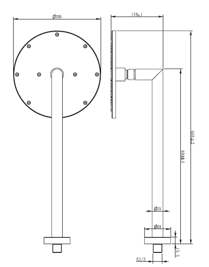 סט זרוע + ראש מקלחת - CHROME BLACK