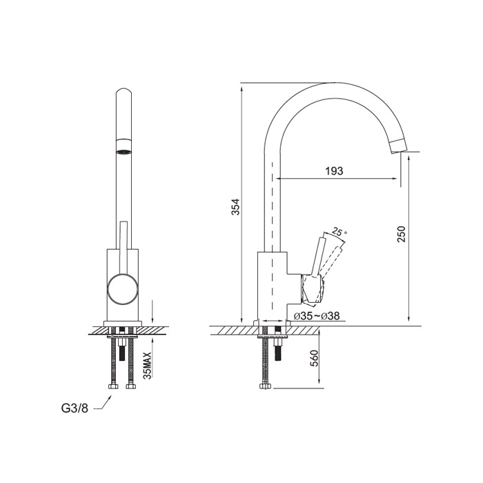 ברז תה״ט 3 דרך - BRUSH NICEKL + BLACK