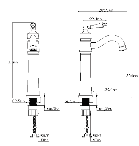 ברז פרח קצר גבוה - BRUSH NICEKL + BLACK
