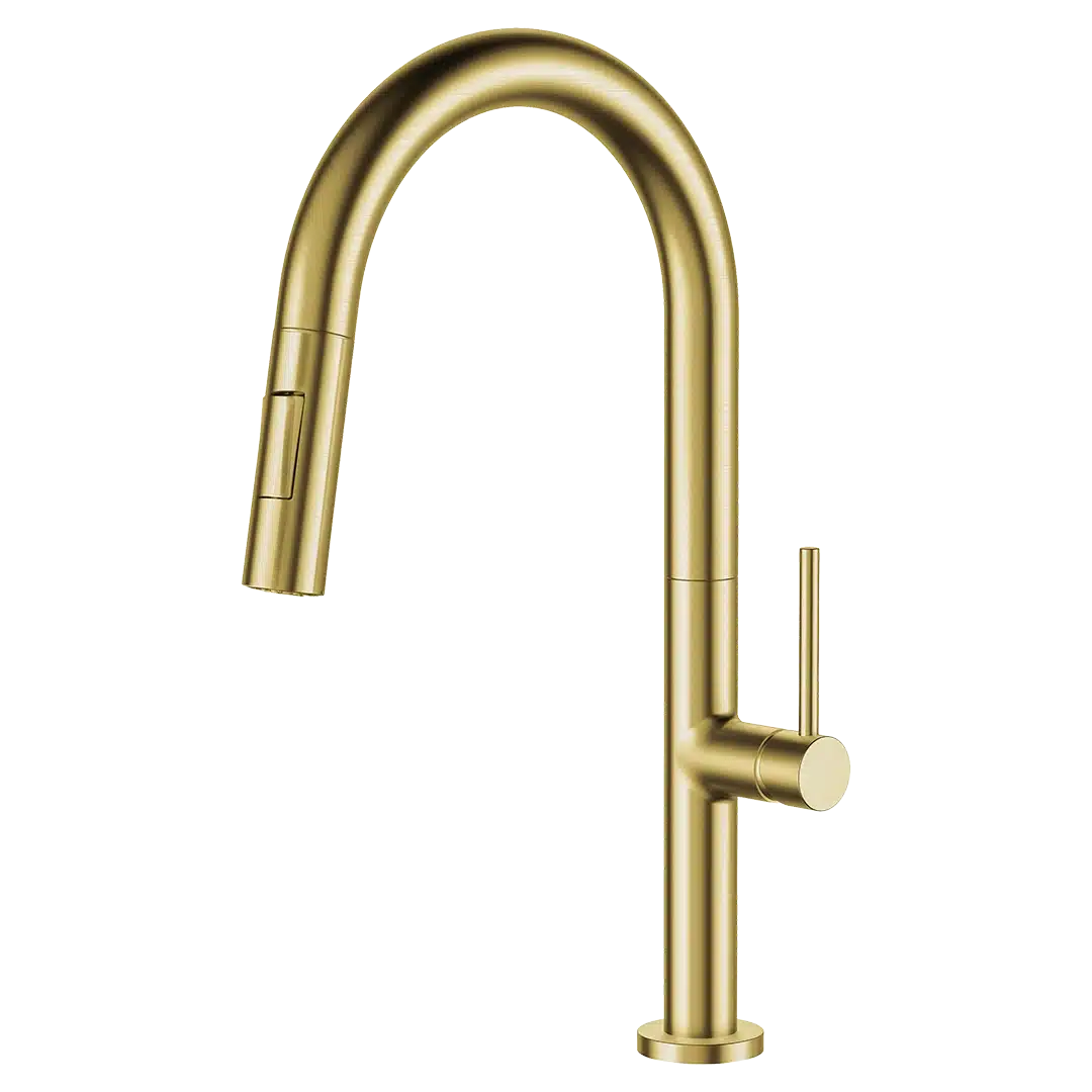 ברז למטבח מינימל פיה נשלפת – זהב מוברש